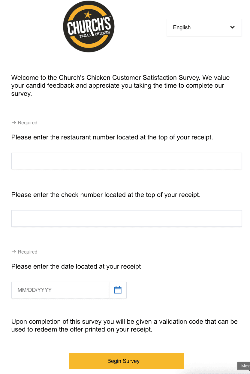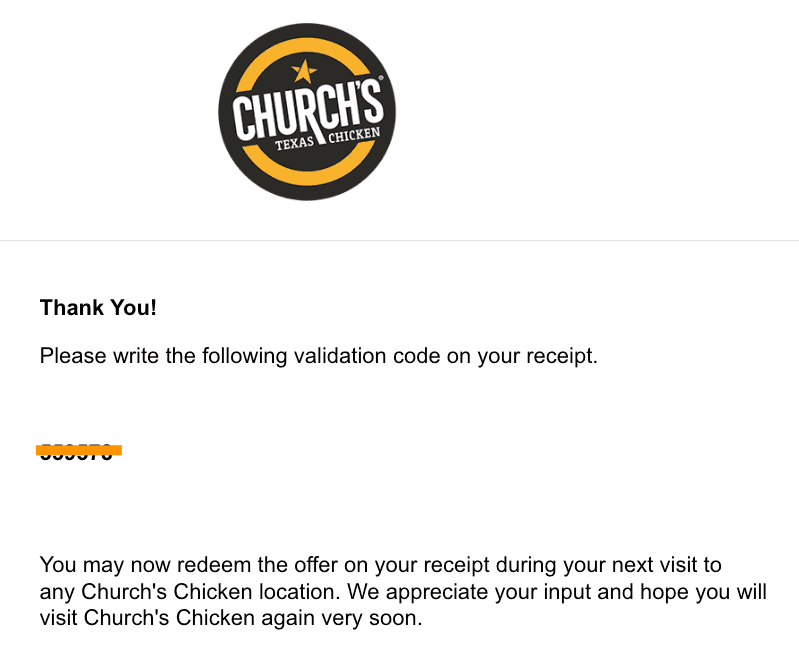 After a recent stop at Church’s Chicken, I noticed my receipt had a survey invite. If you’ve got one too, it’s worth checking out—because in exchange for a few minutes of your time, you can earn a free item on your next visit.